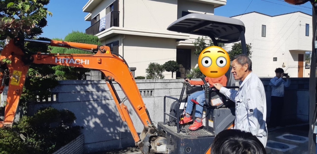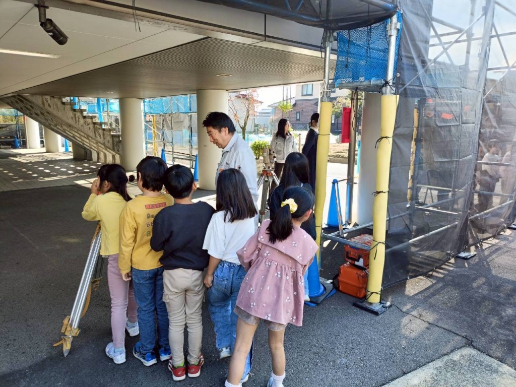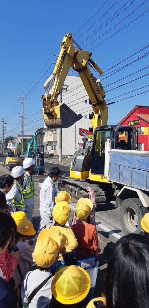 鋭い質問にあたふたしながらも、測量機器でいなっぴーを探したり、バックホーに乗ったり✨